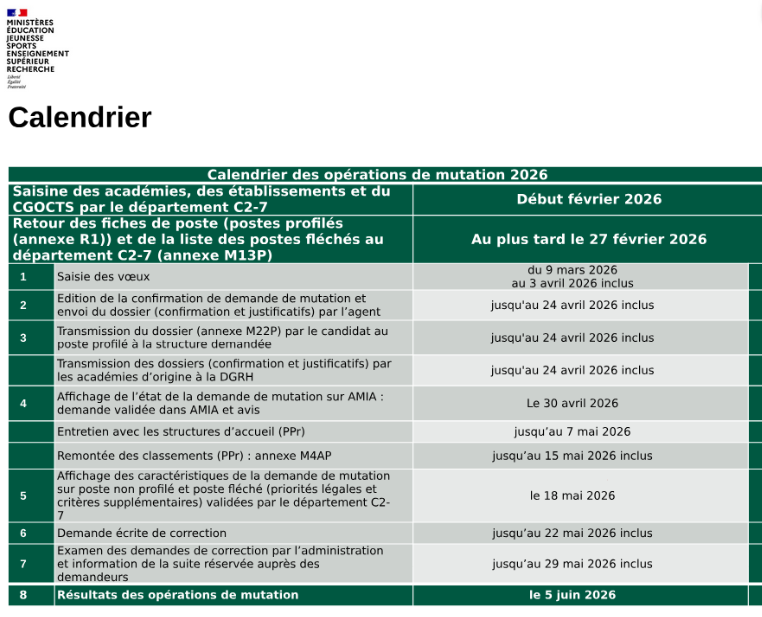 La campagne des vœux pour les mutations des PTP s’ouvre le 9 mars.